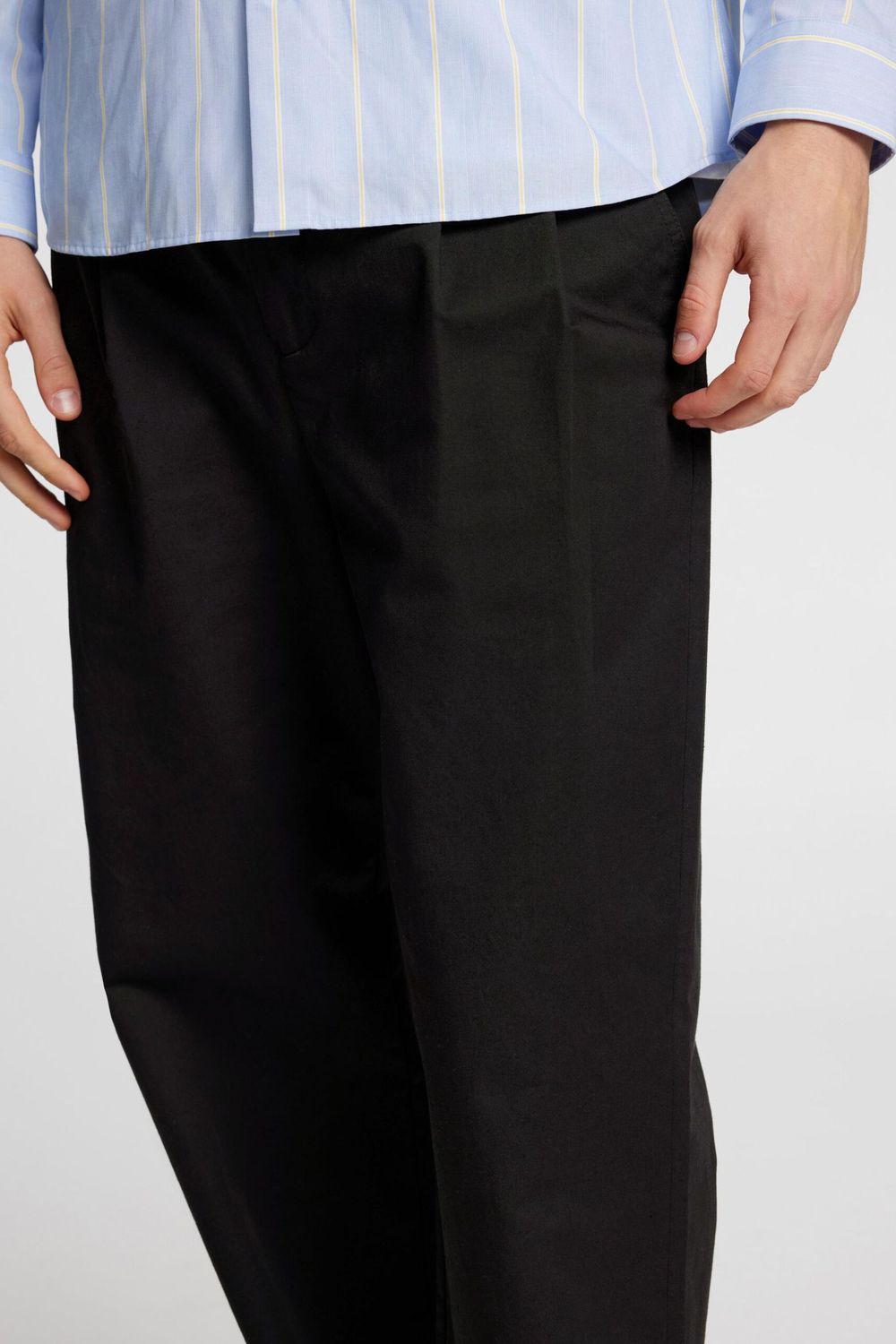 – Bundfalten-Detail am linken Bein