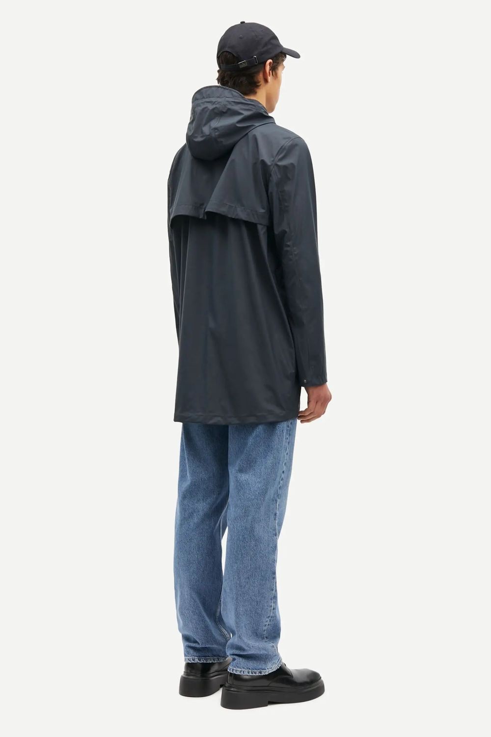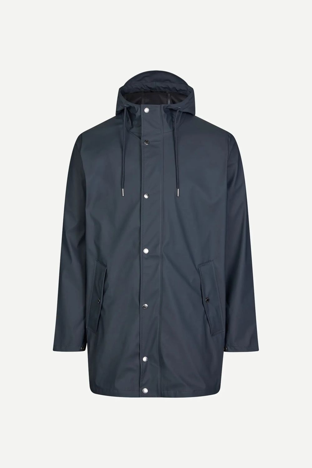 Regenjacke mit normaler Passform. Zwei-Wege-Reißverschluss und Druckknopfverschluss auf der Vorderseite und Manschetten mit Druckknöpfen. Pattentaschen mit Druckknopf auf der Vorderseite. Versiegelte Nähte. Tunnelzug und Schirm an der Kapuze. Wasserabweisendes und winddichtes Material. 4000 mm Wassersäulendruck.