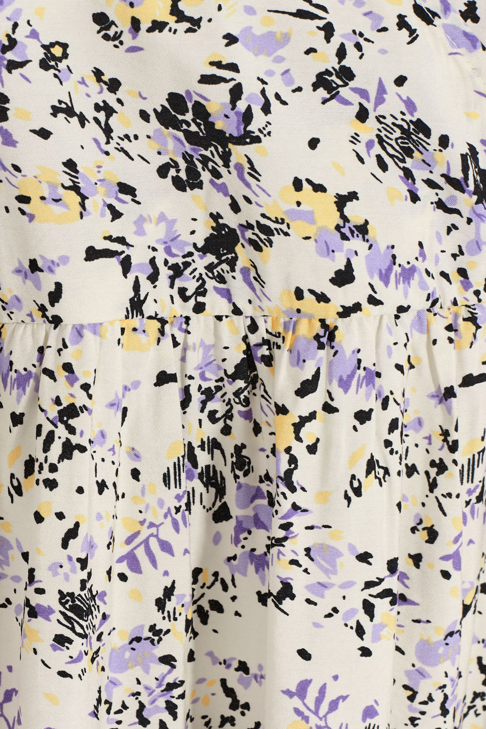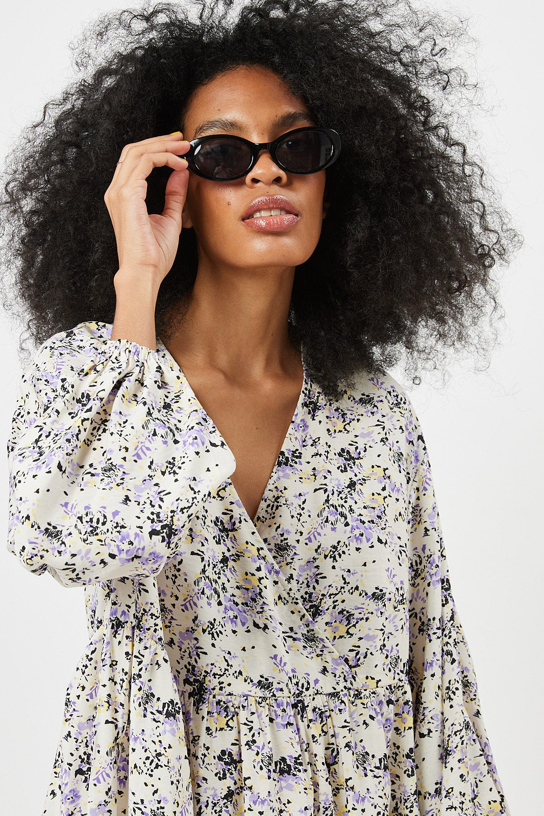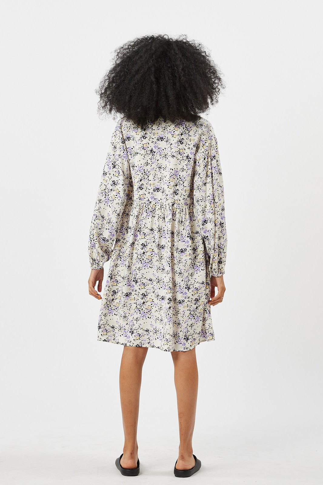Modiva 9744 ist ein kurzes Kleid aus Polyamid und lenzing™ecovero™viscose für eine weiche und leichte Qualität. Das Kleid hat eine lockere Passform und verfügt über lange, voluminöse Ärmel, einen V-Ausschnitt und einen Saum unterhalb der Brust. Es ist mit einem abstrakten floralen Muster gestaltet. Das Model ist 176 cm groß und trägt Größe 36.