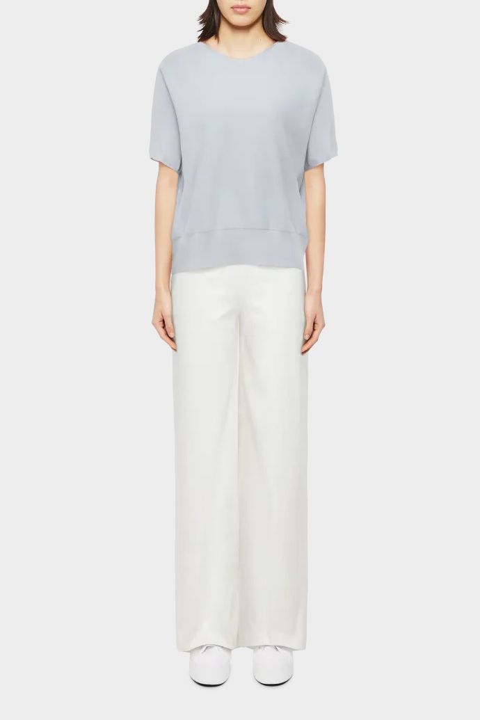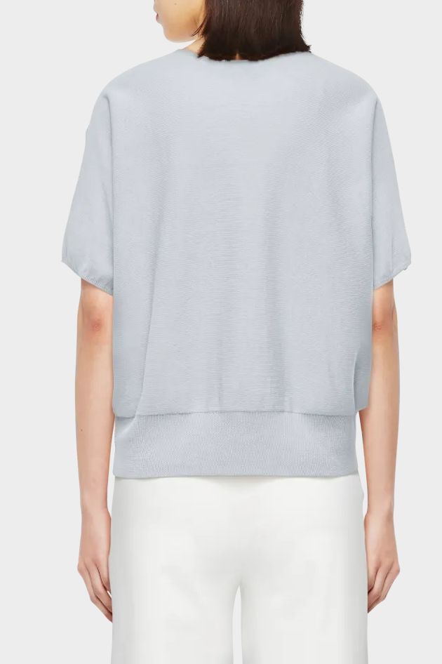 SOMELI ist ein lässig geschnittenes oversized Strick-T-Shirt. Das besondere Detail ist der gerollte Kragen und der breit gerippte Saum. Der Baumwoll-Crêpe bietet durch seine Eigenschaften ein weiches und angenehmes Tragegefühl.