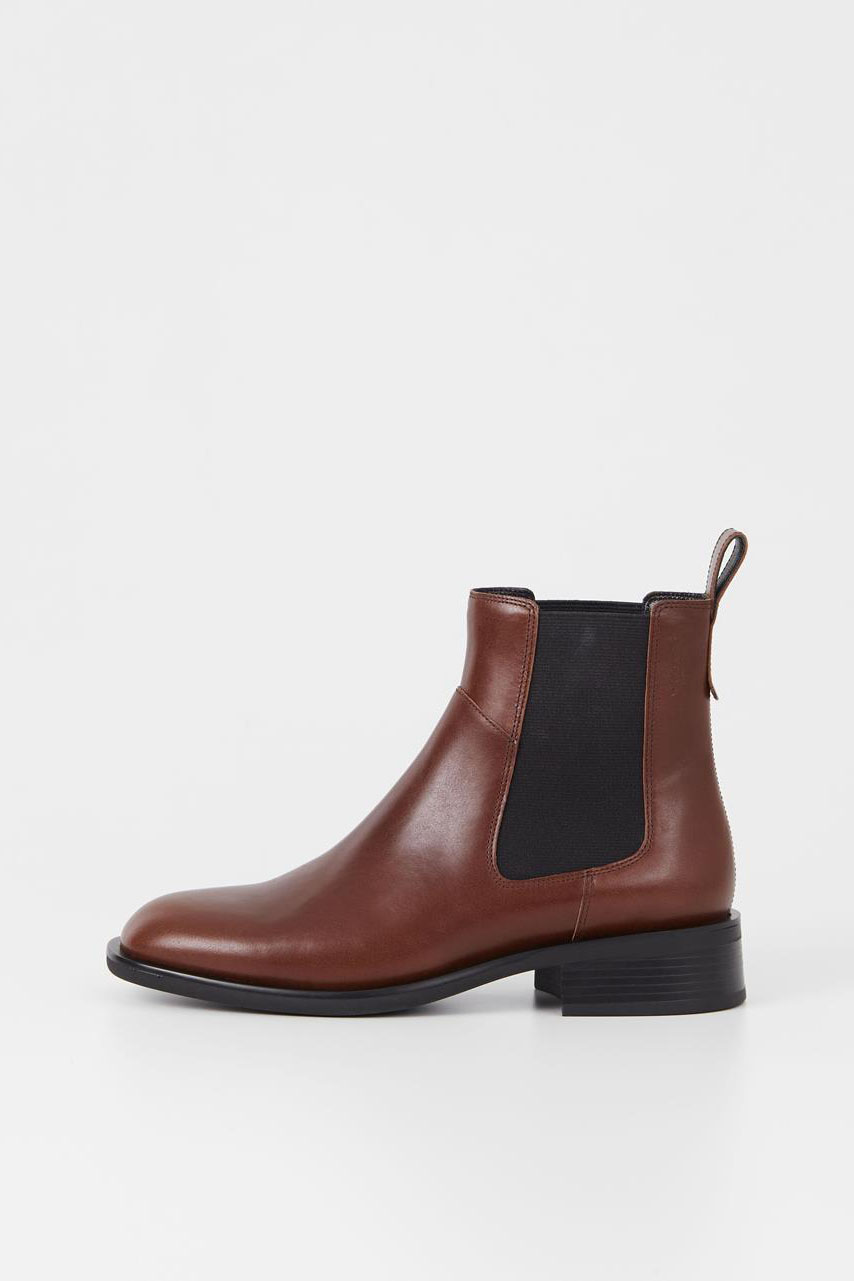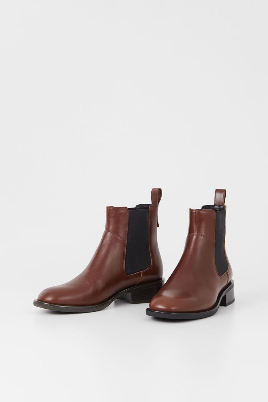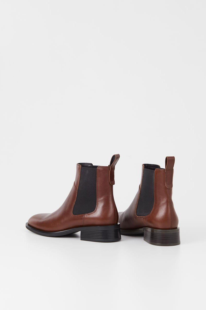 Sheila ist ein zeitloser Chelsea Boot für jeden Tag. Das Modell ist aus cognacbraunem Leder gefertigt und verfügt über eine runde Zehenpartie, elastische Seiteneinsätze und Anziehschlaufen über der Ferse. Die schmalen Absätze sind 3,8 cm hoch.