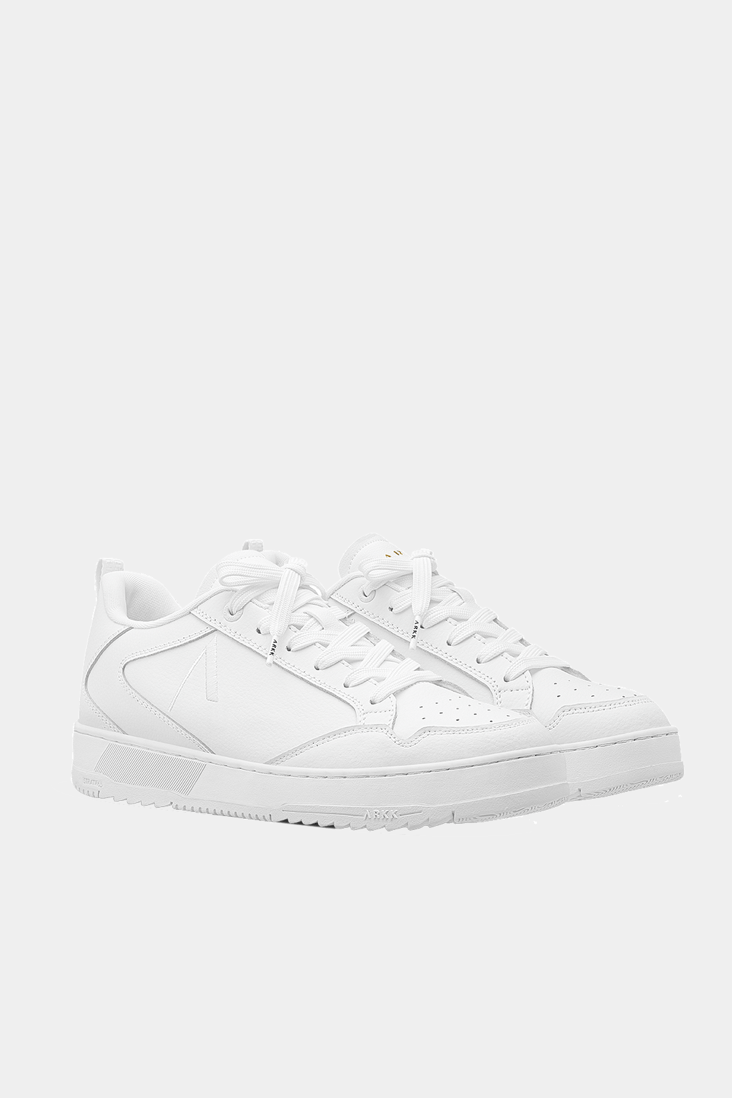 Obermaterial aus hochwertigem Action-Leder Beschichtete, schmale Schnürsenkel für ein einfaches Binden Fersenlasche aus Nylon Gestickte ARKK-Logos an den Seiten Stratr65 Gummisohle