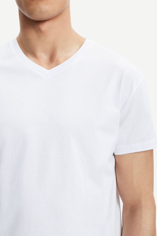 Perfektionieren Sie Ihre Jersey-Basics mit diesem kurzärmeligen T-Shirt mit V-Ausschnitt, das Sie zu Jeans oder unter einem Blazer tragen können, um einen dauerhaften Stil zu erzielen. Dieses kurzärmelige T-Shirt wurde aus einem Jersey-Stoff aus 100 % Bio-Baumwolle gefertigt, der mit einer weichmachenden Waschung veredelt wurde. Der V-Ausschnitt sorgt für Abwechslung in Ihrer T-Shirt-Auswahl.